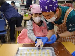 計量やバターを練ったり、協力して生地を混ぜたりと工程はたくさんあったのですがみなさん楽しそうに参加されていました。
